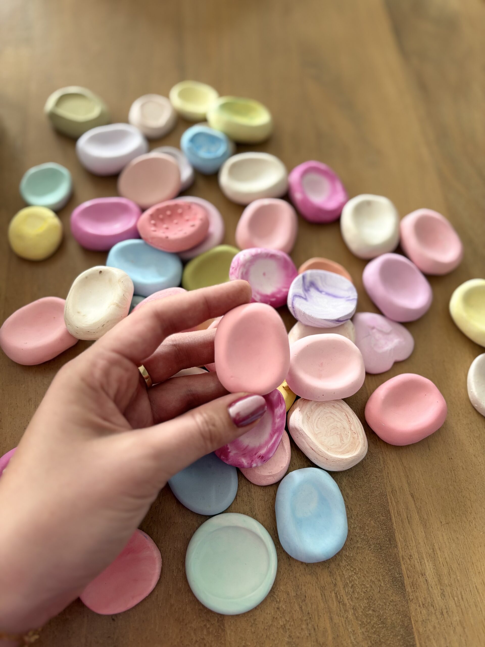 Découvrez les pierres d’apaisement creusées, faites en jesmonite, un matériau innovant et durable, apprécié pour sa douceur au toucher.