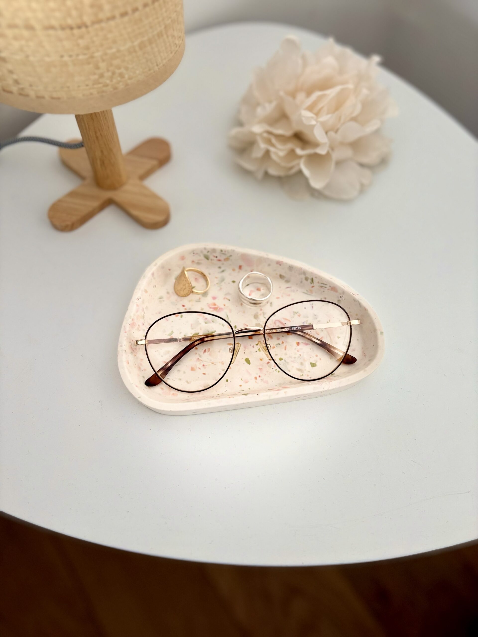 Apportez une touche de poésie et d’élégance à votre intérieur avec ce plateau vide-poche en Jesmonite, entièrement peint à la main et orné de délicates fleurs. Chaque pièce est unique, réalisée avec soin pour allier artisanat et esthétisme.