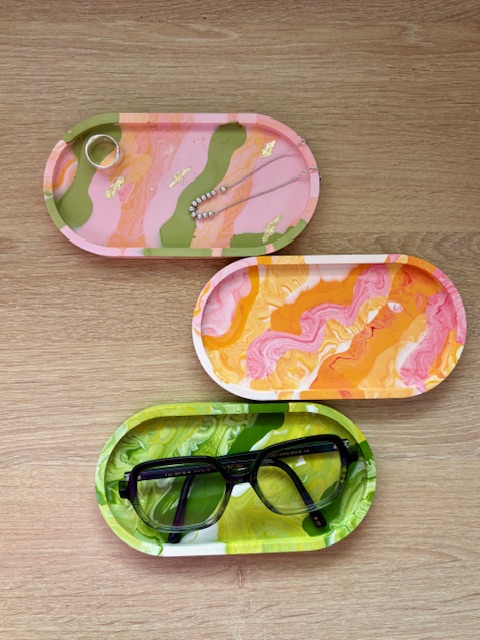 Vide-poche marbré vert rose et orange