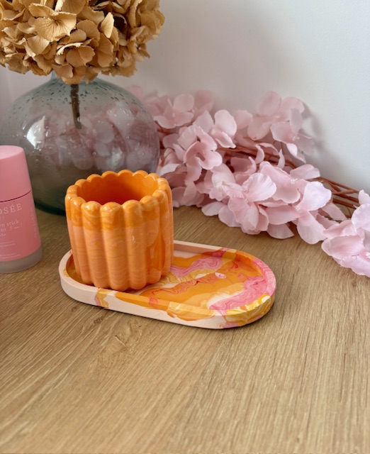Vide-poche marbré rose et orange